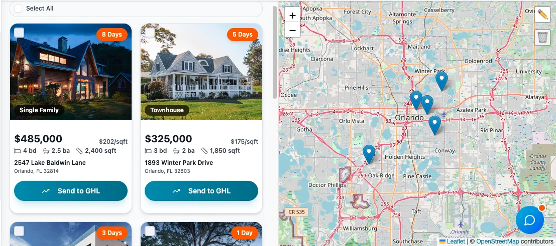 LeadsFeed makes adding MLS properties to your GHL as easy as search + click.