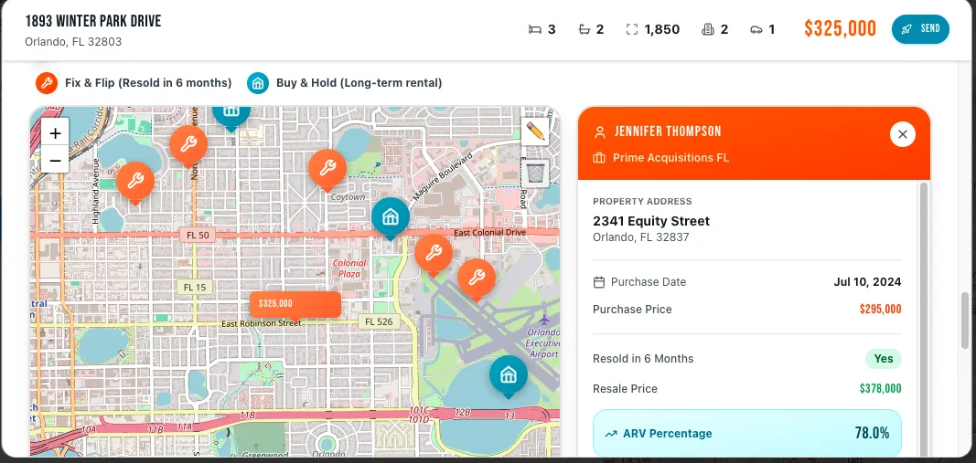 Wholetek not only provides leads but also buyers. Once you secure a contract, check the property file in LeadsFeed for the name of the buyer(s)/LLC(s) who purchased nearby. It's a no-brainer! 🧠